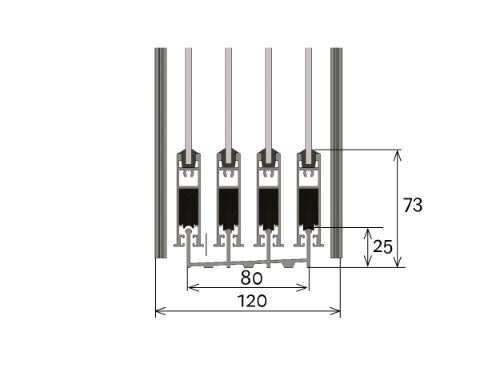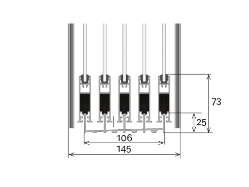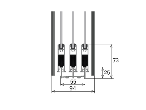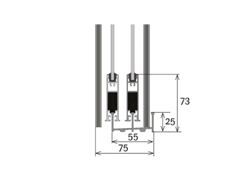 Jedná se výšku od spodní hrany systému po horní hranu příčky (šířka příčky 25 mm).